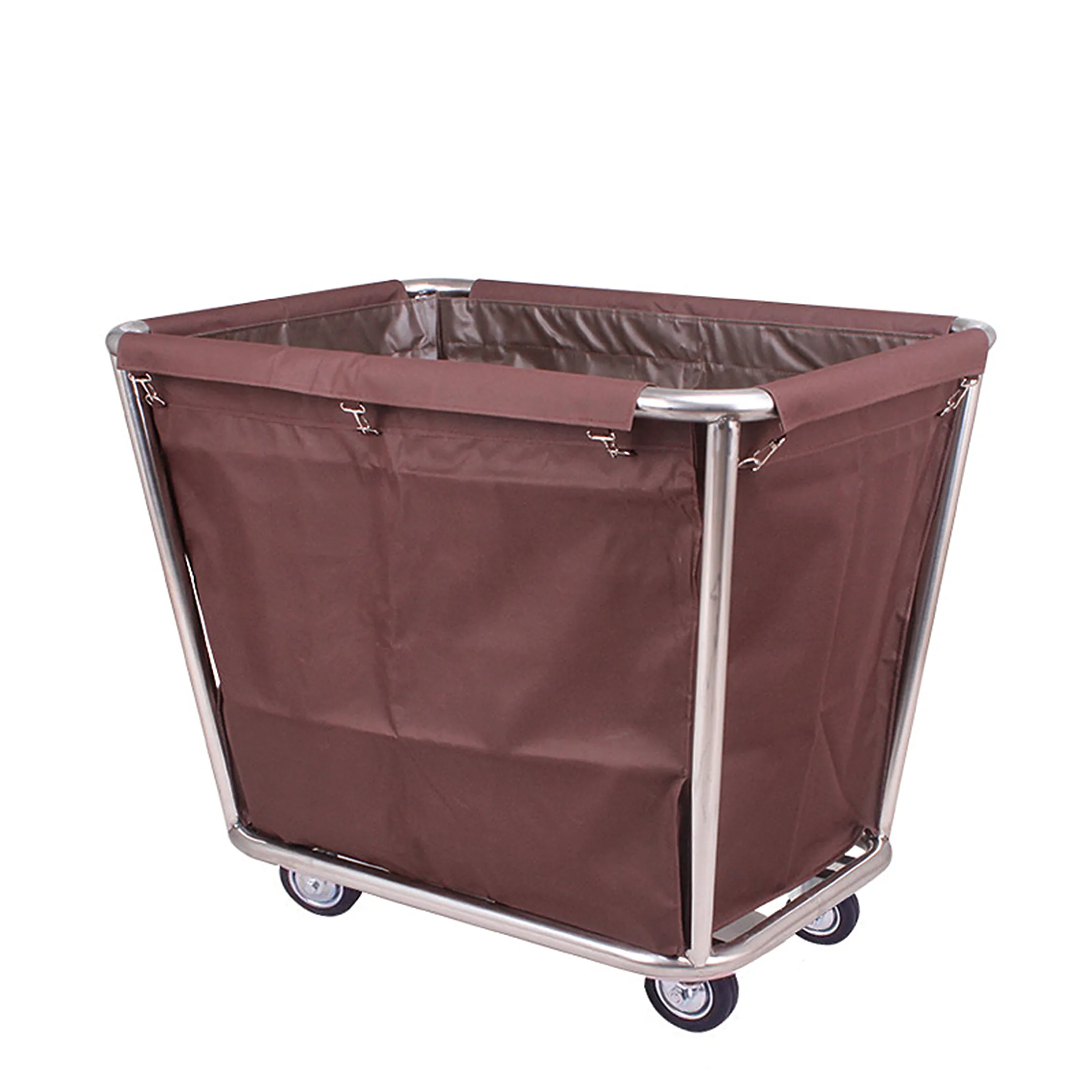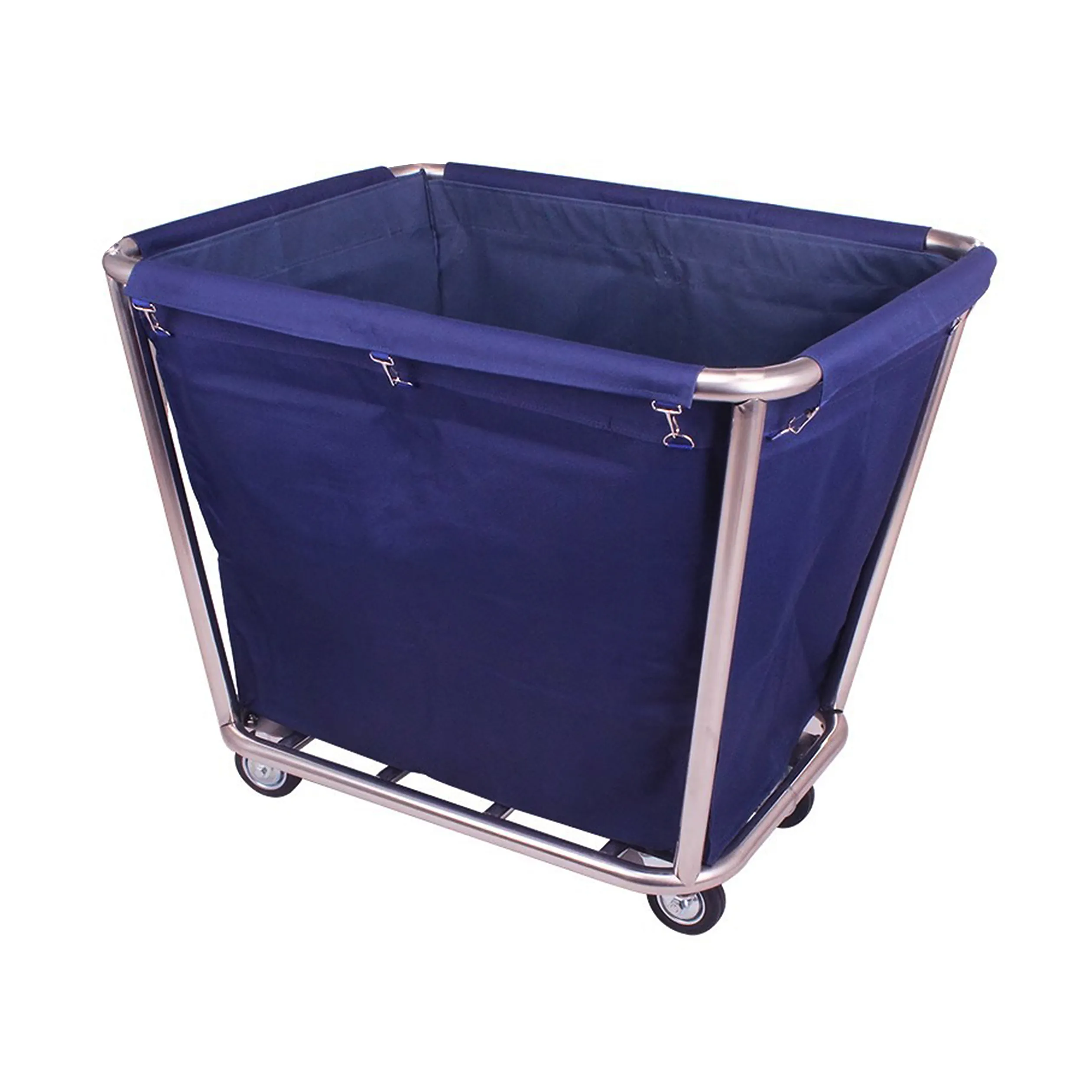 Introducing Classy Linens linen trolley, crafted from high-quality stainless steel and available in multiple colors upon request. This trolley features a waterproof canvas bag for secure and clean storage of linens. The durable rubber bumper ensures protection against accidental impacts, while the four poly-on-poly swivel caster wheels allow for smooth and effortless movement. linen trolley is the perfect companion for the housekeeping department